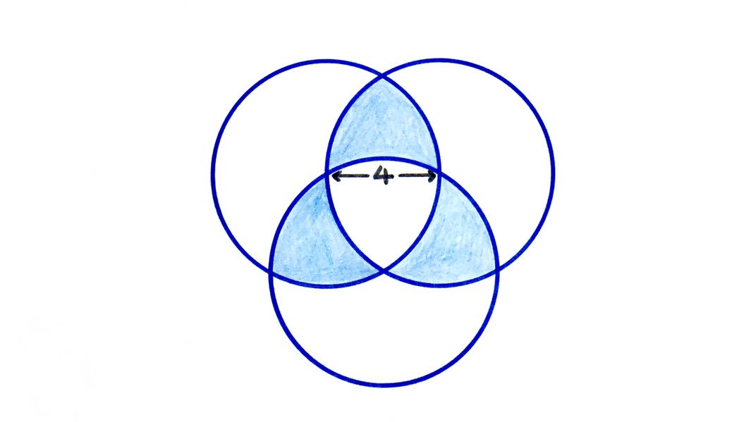 Şekilde verilen üç eş çember ve 4 birim uzunluk için taralı alan kaçtır?